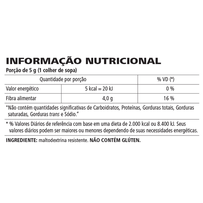 É um produto de origem natural, em pó, fonte de fibra solúvel.Contribui para o consumo diário de fibras alimentares;